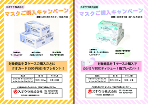 期間中、対象のサージカルマスクのご購入数事にプレゼントを贈呈いたします。是非この機会にご購入ください! キャンペーン期間 2018年9月1日〜12月29日 対象商品 フジサージカルマスク サラヤサージカルマスクE ご不明な点がございましたら、弊社担当営業、又はお問合せフォームよりご連絡ください。