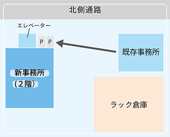 事務所を同敷地内の倉庫2Fへと移転致しました。